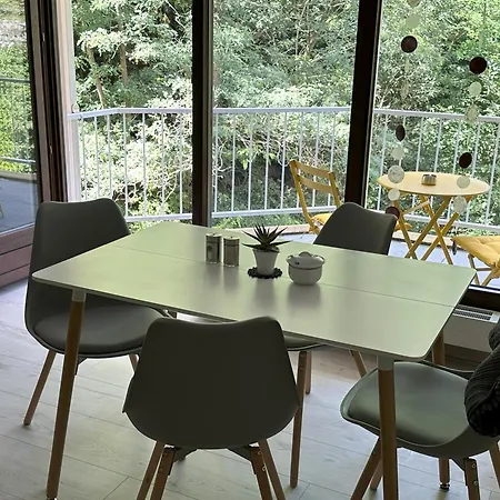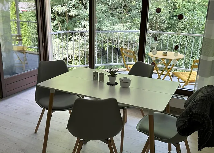 A fully furnished kitchen with a fridge and glassware is available for self-catering needs. The 55 m^2 apartment is near Bad Bergzabern Thermalbad bus stop.